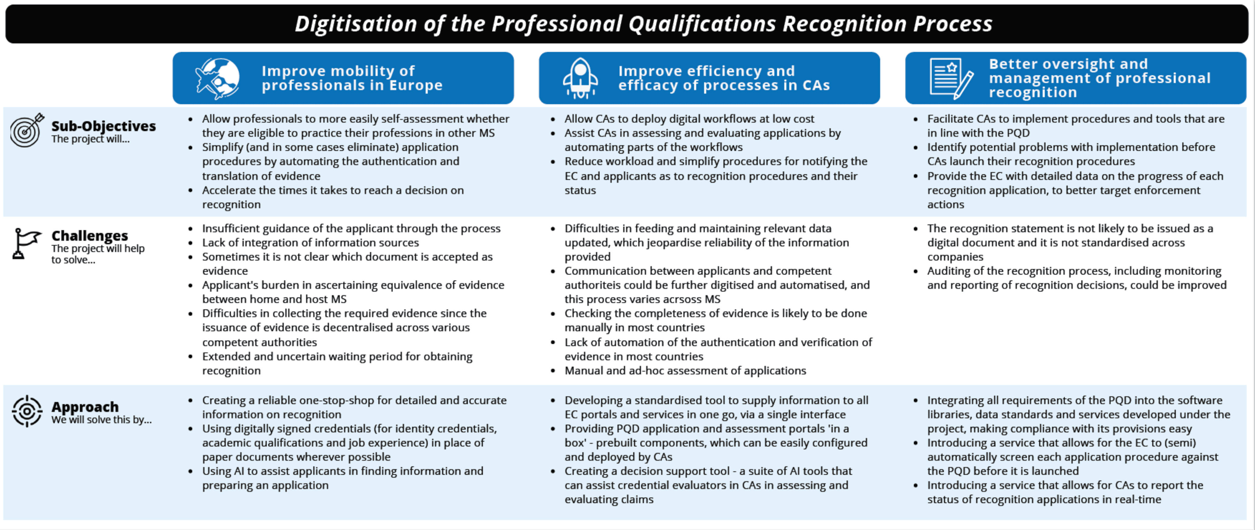 If you're a nurse in Romania and you want to work in Germany, you need your professional qualifications recognised by the German authorities. This process is governed by an EU directive from 2005, and it's a mess. Applicants struggle with fragmented information spread across multiple portals, unclear document requirements, and months of waiting. On the other side, competent authorities (the government bodies that evaluate these applications) do most of their work manually: checking document authenticity by hand, comparing qualifications case by case, emailing applicants about missing paperwork.