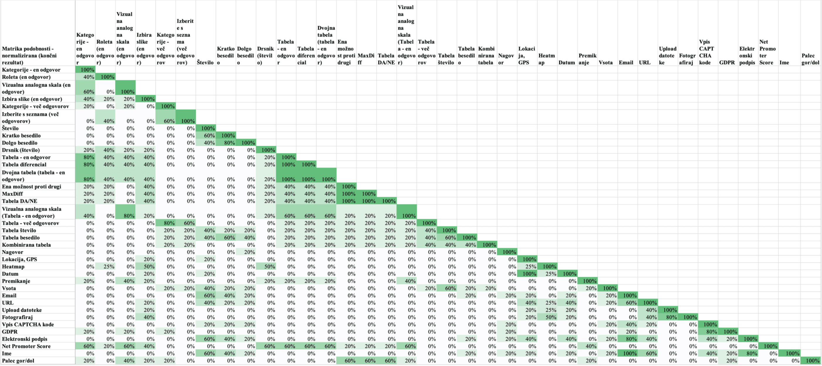 Participants also drew a clear line between single-answer and multiple-answer question types, a split most competitor tools collapse into one group. And they treated tabular question types not as their own category, but as multi-item versions of their single-item equivalents.