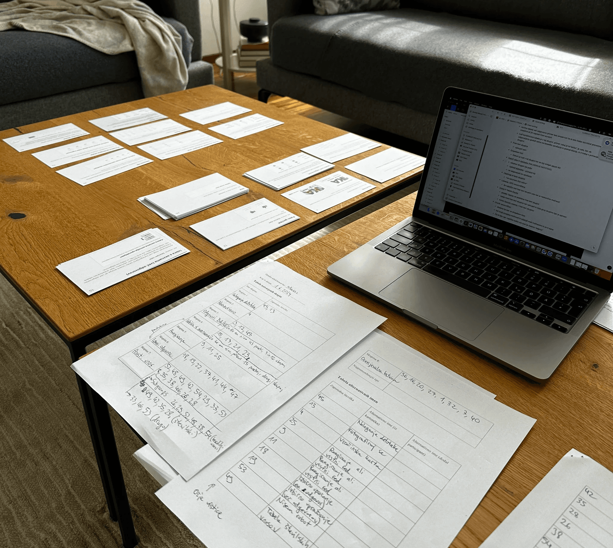 Photo from the pilot card sorting session